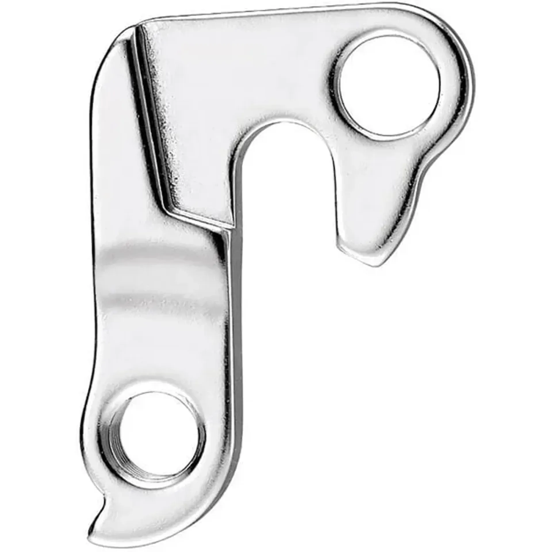 Bicycle gear hanger designed to bend or break on impact, preventing expensive frame damage.